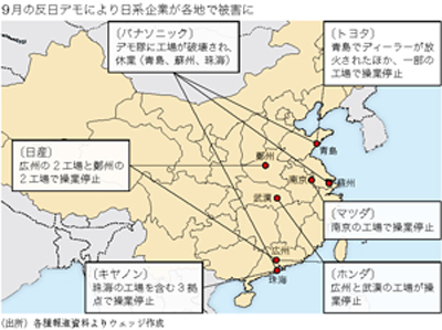9月の反日デモにより日系企業が各地で被害に拡大画像表示