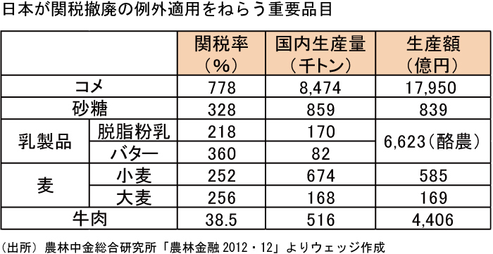 日本が関税撤廃の例外適用をねらう重要品目拡大画像表示