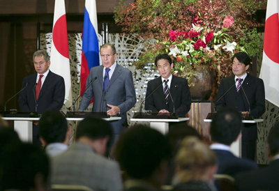 2013年11月2日、第1回「日露外務・防衛閣僚協議(2プラス2)の初会合が東京で開かれた。これは、同年4月の安倍首相による10年ぶりの公式訪露の際に合意されたものである。「2プラス2」の実施国は、日本にとっては米国、豪州に続いてロシアが3例目となり、ロシアにとってはフランス、米国、イタリア、英国に次いでアジア諸国では初めてである。平和条約が締結されていない日露間において、安全保障問題に関して4閣僚が定期協議を行うメカニズムが誕生したことは意義深い。