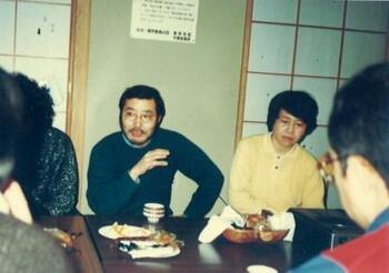 秋津小学校PTA主催の「PTA談話室」。真ん中のひげ面が筆者。1991年10月