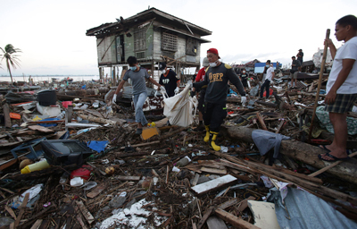 フィリピンを直撃した「史上最大級」台風30号。被害は甚大 (写真:AP/アフロ)