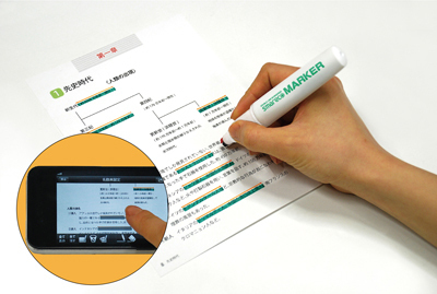 使い方はまず、参考書などの暗記したいところをマーカーペンでマーキングする。ペンはスマホが暗記箇所を正確に認識するよう、グリーンとオレンジの2本線となっており、これが開発上のポイントともなった。マーキング後はスマホの基本ソフトである「iOS」と「Android」に対応するアプリを立ち上げ、写真撮影する。