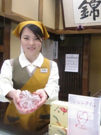 今年販売しているのは、ハート型のガラス容器入り商品。チョコレートの代わりとしての需要のほか、「自分用のお買い求めや、意外と男性のお客さまにもご家族へのプレゼント用としてお買い求めいただいている」と四谷本店店長の岡野さん。他の商品に比べて幅広い層から人気のある商品だという。