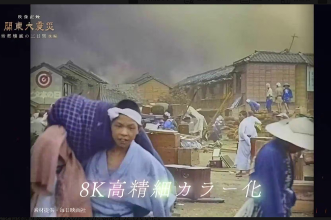 8Kリマスターとカラー化による映像によって、防災研究者が映像の場所と時間を推定した。地震発生直後に火災が発生したというのに、当初の映像に映し出されていた人々は火事の煙の方向を見つめているだけで、笑顔を浮かべている人もいる。緊張感が見られないのである。