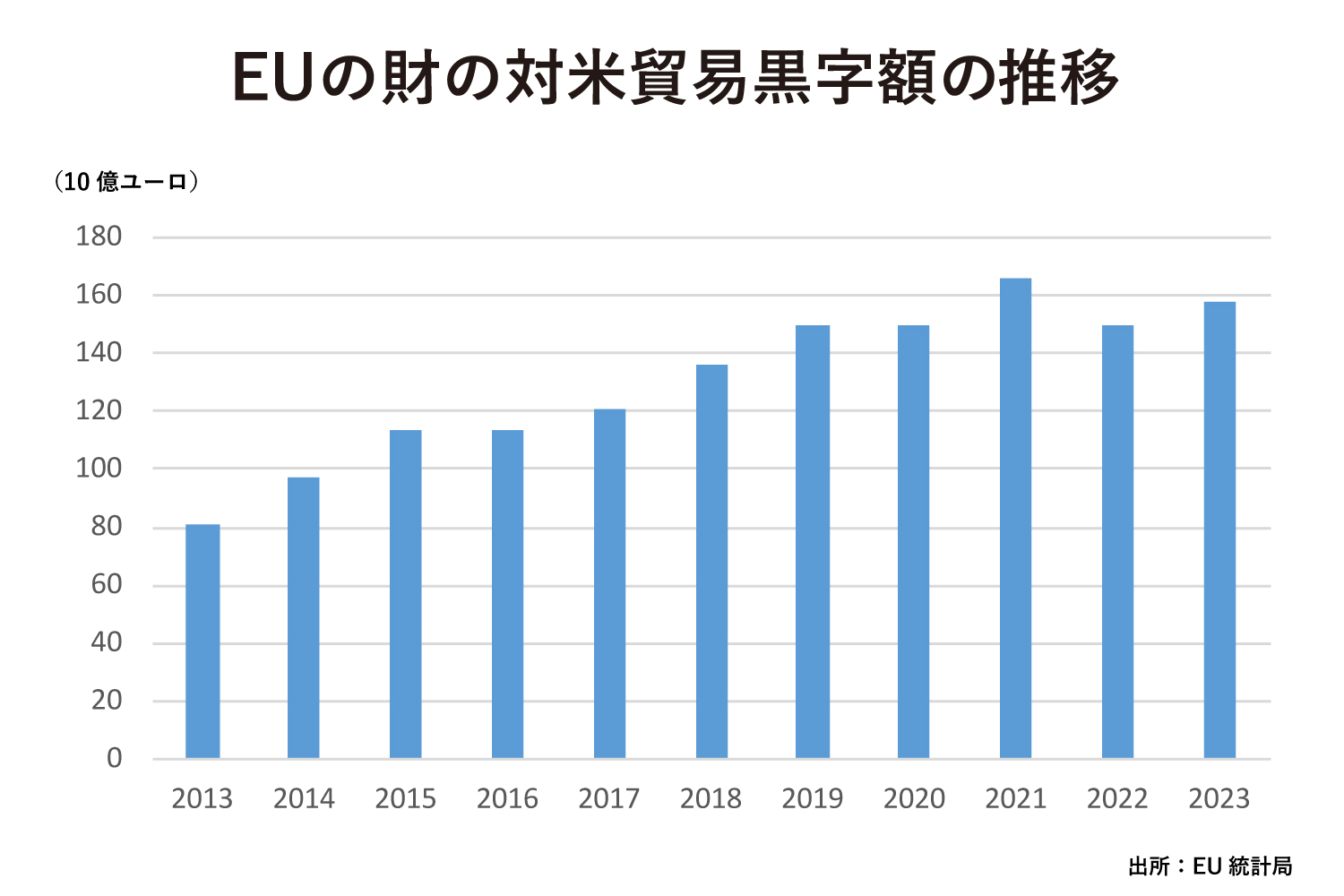 その理由は、統計を見れば明らかだ。EU統計局によると、EUの米国に対する財の貿易黒字は、13年の813億ユーロ(13兆80億円)から94.2%増えて、23年には1579億ユーロ(25兆2640億円)となった。23年のEUの米国からの財の輸入額は、EUの米国への財の輸出額に比べて約31%少ない。トランプ氏がこの貿易黒字を不問に付すことはまずないだろう。