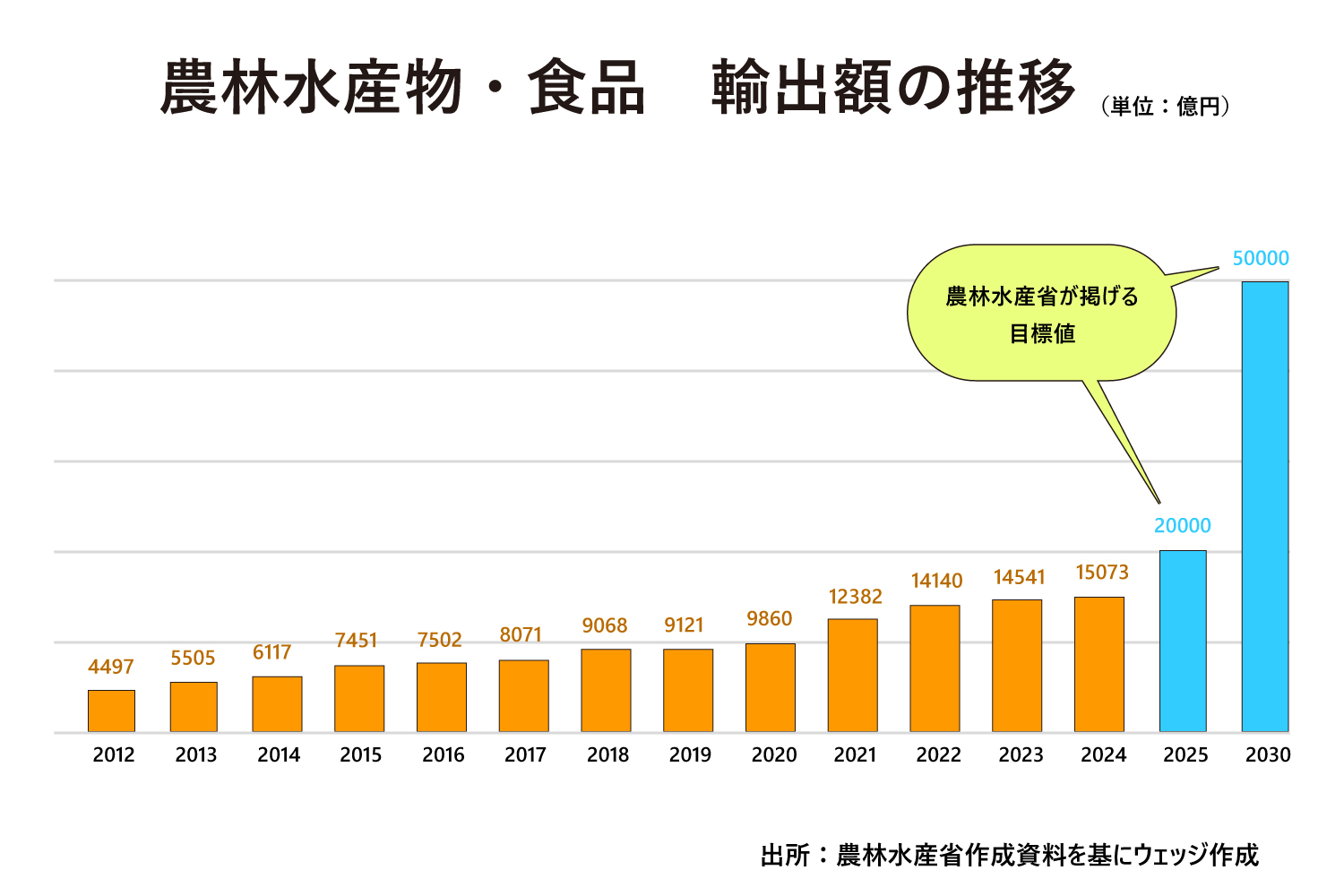 輸出額の増加は12年連続。25年は5000億円を上積む2兆円という目標を掲げており、江藤拓農林水産大臣は、「高いハードルかもしれないが、決して不可能ではない」と強調している。