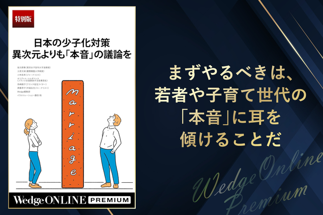 月刊誌『Wedge』2023年8月号(7月20日発売)の特集「日本の少子化対策 異次元よりも「本音」の議論を」に、同誌21年12月号(11月20日発売)の「「親の義務」から「社会の責任」へ 子育て先進国・フランスに学べ」高崎順子(在仏ライター)の記事を加えた特別版です。
