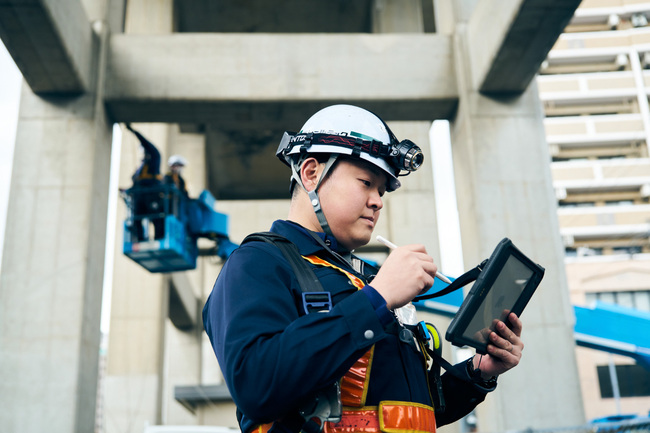渡邉さんがレールテックに入社したのは12年。同社には軌道の検査・工事や工事で使用する保守用車の検査などを行う部門もあるが、一貫して構造物の検査・点検に携わってきた。