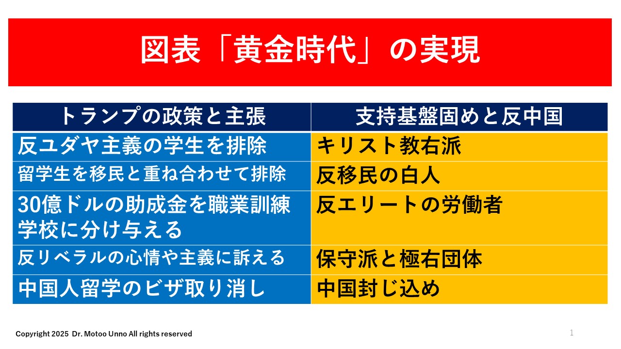 こうして見てくると、トランプは、キリスト教右派、反移民の白人並びに労働者の支持基盤固めのために、ハーバード大学を最大限利用し、移民を排除して「米国を再び白人にする(マワMAWA: Make America White Again)」ことで、黄金時代を実現しようとしていることが分かる。