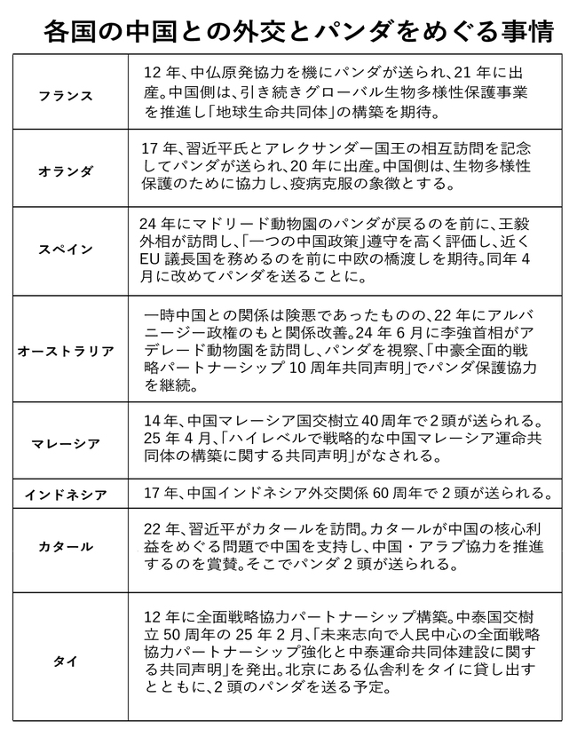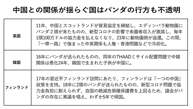 中国との関係が揺らいでいる国はパンダの行方も不透明である。
