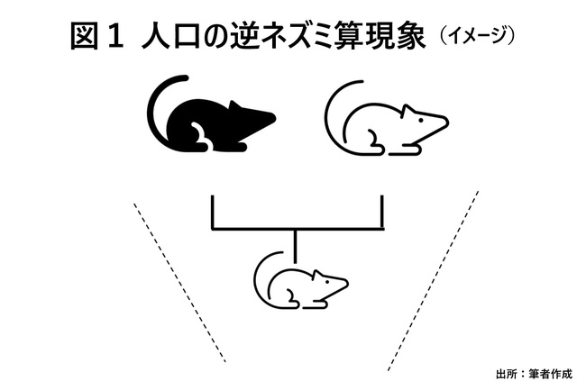 先ごろ公表された23年の「人口動態統計」(厚生労働省)によれば、東京の出生率(合計特殊出生率)は0.99と初めて1を割り込んだ。この合計特殊出生率は1人の女性が生涯で産む子供の数を近似するものであるので、東京の女性(母親)と男性(父親)の2人から1人未満の子ども(次世代)しか生まれないことを意味し、人口の「逆ネズミ算」減少を起こしていることが分かる。