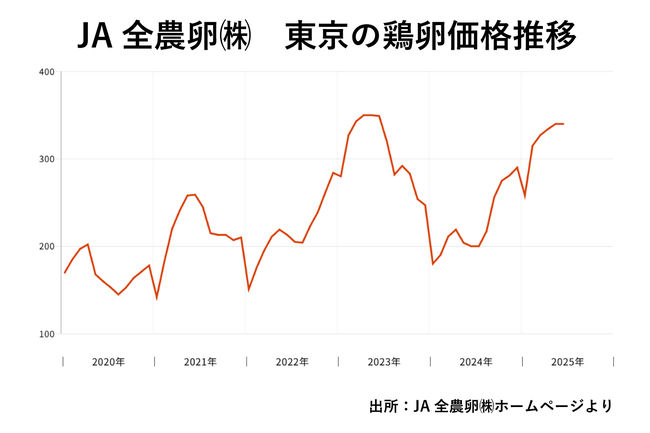 それに比べて卵の値段は高止まりしてしまった感がある。2023年に続き25年1月も鳥インフルエンザが広がり、5つの県で34カ所、処分の対象となったニワトリなどの数は652万羽にのぼった。
