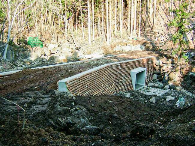 谷や沢の規模、その上流の集水面積の広さ、地域の10年確率の降雨強度などによって費用対効果を考慮して、具体的な施設や規模が選択される。本当は閉塞しにくい大きめのものにしたいのだが、限りある予算の中ではそうもいかない。