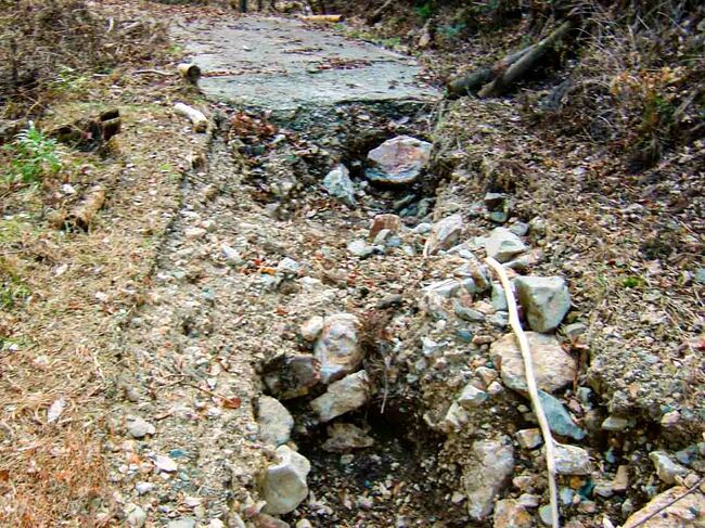 さらに盛土部分は構造的に水が浸透しやすいので、路面水が浸透して一気に崩壊流失することが多い(写真7)。