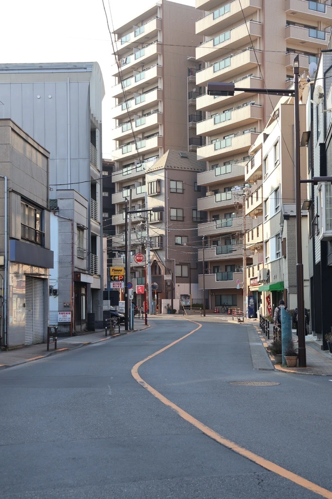 さて、お腹も膨れたところで、つぎは蔦重の菩提寺へ向かうことにしました。吉原神社まで戻り、仲之町通りをまっすぐ東のほうへ歩くと、やがて大きなS字カーブが現れます。ここは五十間道(ごじっけんみち)と呼ばれ、江戸時代は両側に引き手茶屋や小料理屋などが立ち並んでいたところ。蔦重が最初に書店「耕書堂」を開いた場所でもあります。道がS字に曲がっているのは、外から遊郭の様子が見えないようにするための工夫だったと言います。