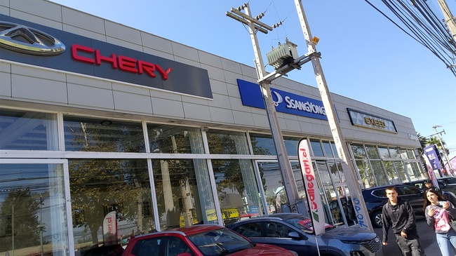 カラマのグラダナス通りの上記の2軒の大型中国雑貨ショップの付近には、自動車販売店が軒を連ねてカー・ディーラー街を形成していた。トヨタ、ホンダの大きな店舗が先ず目に付いた。トヨタ販売店で聞くと、やはり南米では電気自動車は全く人気がなく時期尚早とのコメント。数年前からガソリン価格が高騰しているので、ハイブリッド小型乗用車が人気らしい。韓国のヒュンダイ(現代自動車)、キア(起亜自動車)の販売店の先にChery(奇瑞自動車)、Exceed(奇瑞自動車のプレミアムブランド)、Geeley(吉利自動車)という中国メーカーの販売店もあった。