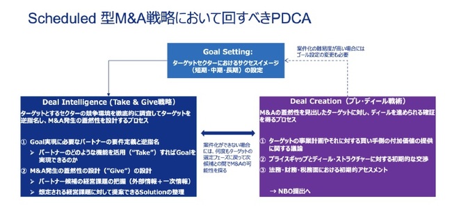 この根源的な問いに対する唯一の解は、M&Aの企画段階から関わってきた人材を派遣することだ。自社の成長戦略の立案に関与し、Deal Intelligenceを駆使してターゲットを選定し、シナジー実現のための事業計画をターゲットと膝詰めで議論し、そしてバリュエーションやDDの修羅場をくぐり抜けた人材。案件の文脈を知り尽くし、シナジーの実現への勘所を有し、そしてターゲット側の人材との信頼関係が構築されている人物。過去三回のここでの寄稿で解説し、再びここでも紹介するが、「Scheduled M&A戦略において回すべきPDCA」を実践・熟知した人材こそが、PMIの現場を率いるべきなのである。社内の事情で「偉くなるべき人」を要職に就けることは構わないが、PMIの実践という経営スキルを要する職務には、このような経験とスキルを持った人材を充てることが最もふさわしいと言える。