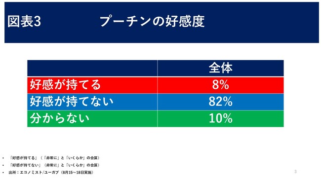 米国民は侵略者であるプーチンに対して、好感は持てないが、強いリーダーであると認めている。一般に、米国民は強いリーダーを支持する。その強さは、権力であり、肉体的強さであったりする。故に、この調査結果の「強い」には、独裁的リーダーという意味が込められている可能性が高い。