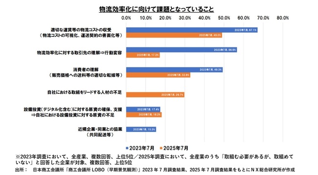 このことは、物流というインフラが長年コスト削減の対象としてしか見られてこなかったこと、そのマインドセットを変換することは一朝一夕には行かない根深い課題であることを示している。