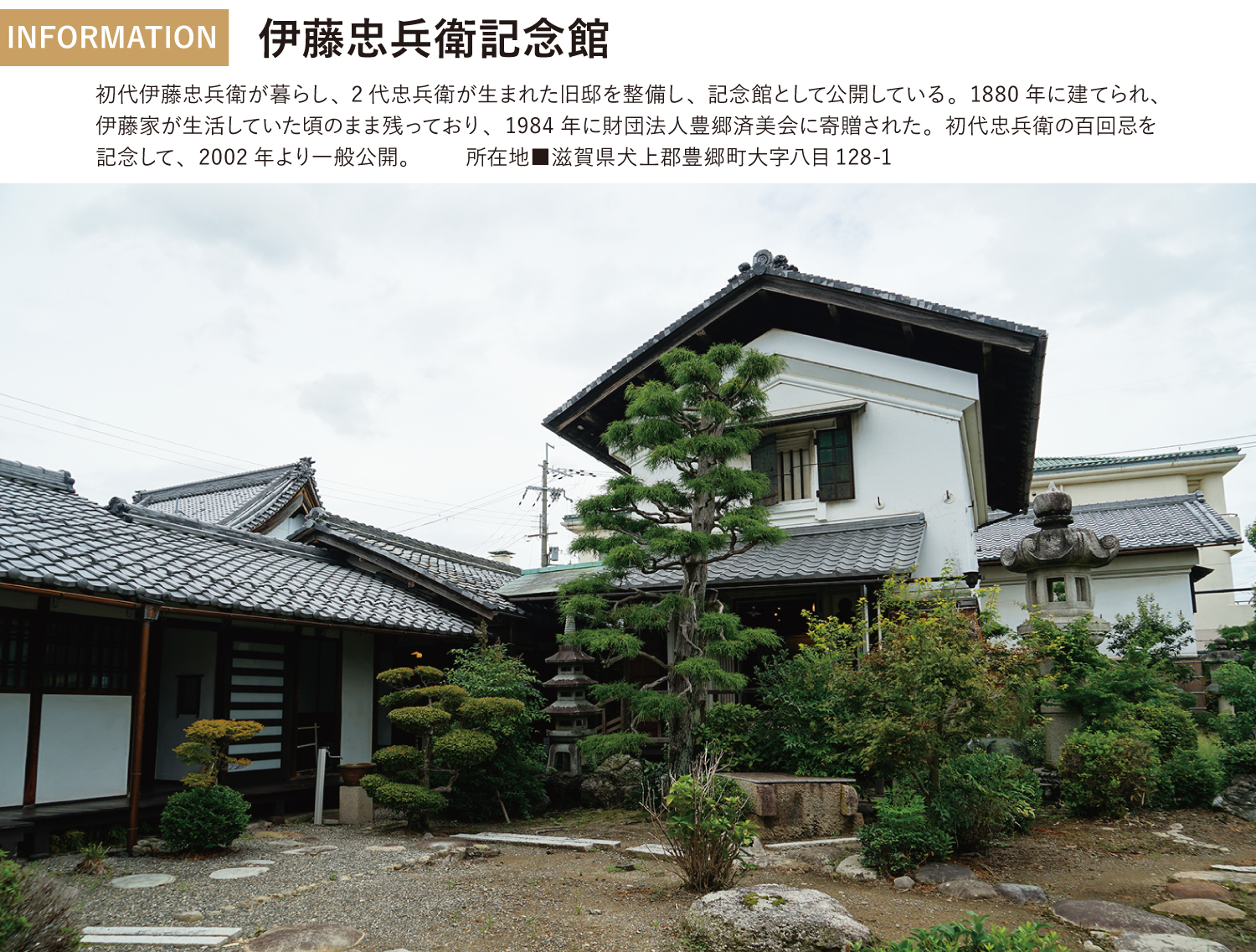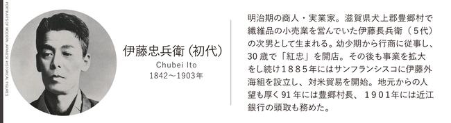 ビジネスチャンスに敏だったことが忠兵衛を支えたことは疑いない。一方で、忠兵衛は店員それぞれの権限と義務を明確にし、重要な決定には店員たちから意見を求める場を設けた。今でいう会議だ。また、店員の士気を上げるために、利益を伊藤家、店、店員で三等分する決まりとした。ボーナスの走りだろう。月に6回、1と6の付く日には店員たちに牛肉をふるまって健康増進に努めるなど、福利厚生も重視した。他にも運送保険や洋式簿記の導入、学卒者の採用など、当時の卸問屋には例を見ない施策を次々と実行してゆく。常に店の2階に寝泊まりし、妻の待つ豊郷に帰れるのは年に30日ほどだったという。