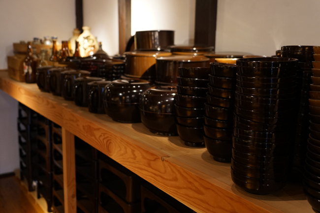 屋敷内には3棟の蔵が遺されている。うち1棟にはお膳用の食器類の他、大量の寝具が納められていた。正月に店員の家族を招いて祝うためのもので、店員を大事にした初代忠兵衛の姿勢をいまに伝える。別の蔵には創業からの歴史が展示され、中の一枚、東大寺大仏殿で大勢を撮影した記念写真は、店員たちの慰安旅行の折のものだ。蔵の中に眠っているのは、店員を家族のごとく大事にした伊藤忠兵衛の商人道だった。