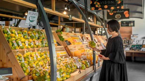 多気町にある、食と癒しのリゾート施設「VISON(ヴィソン)」。東京ドーム24個分(約119ha)の広大な敷地には、松阪牛や伊勢えびなど、三重の海と山の幸が集まる日本最大級の産直市場「マルシェ ヴィソン」など10エリア70店舗があり、有名シェフが手がける三重県産の食材を使用したグルメ、ショッピング、食べ歩き、木工体験に森のアクティビティなどが楽しめます。4つのタイプの個性的なホテルや、本草学から生まれた本格的な薬草湯が楽しめる温浴施設もあり、宿泊してゆっくり楽しむこともできるリゾートです。