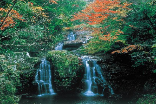 名張市にある「赤目四十八滝」は、大小の滝と深い森がつくる壮大な自然景観。滝壺も含めて23瀑もの滝を見ることができます。その長さは約4㎞にも及び、「平成の名水百選」や「日本の滝百選」にも選ばれた名勝地です。