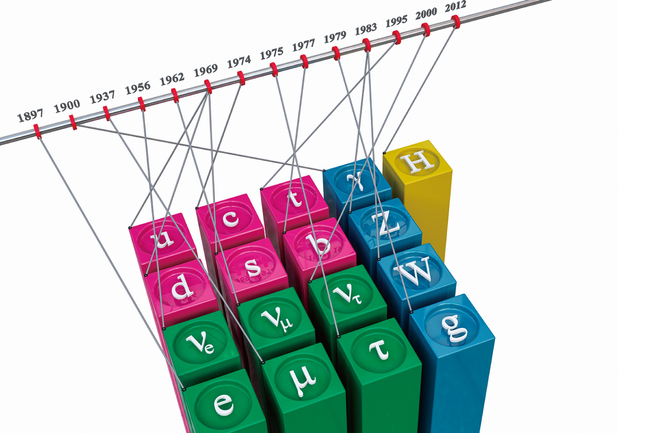 1897年の「電子」から2012年の「ヒッグス粒子」の発見まで17個の素粒子発見年表(SCIENCE PHOTO LIBRARY/AFLO)