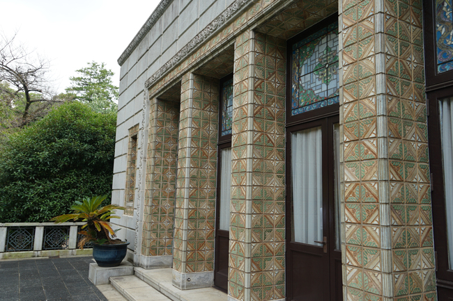 渋沢は目的を変更し、大人数の客との懇談の場所として用いた。高い天井を支える柱には装飾タイルを張り、大きな窓の上部にはステンドグラスを入れた豪華な造りにしてあったから、オフィシャルな場所には恰好だったろう。2階への螺旋階段は美しいカーブを描き出している。多年の功労への深い敬意が、至る所に感じられるのだった。
