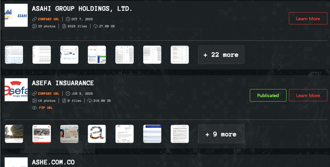 Qilinは、身代金の要求に応じなければ全てのデータを公開するぞと脅す、いわゆる二重脅迫型のランサムウェアだ。身代金の支払いに応じなかった企業のステータスは、「Publicated(公開済み)」の表示がなされるが、直近のブログではアサヒグループホールディングスは、公開には至っていない。