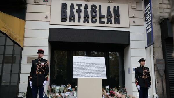 90人が殺害されたバタクラン・コンサートホールでは、犠牲者を追悼する式典が行われた(13日、パリ)