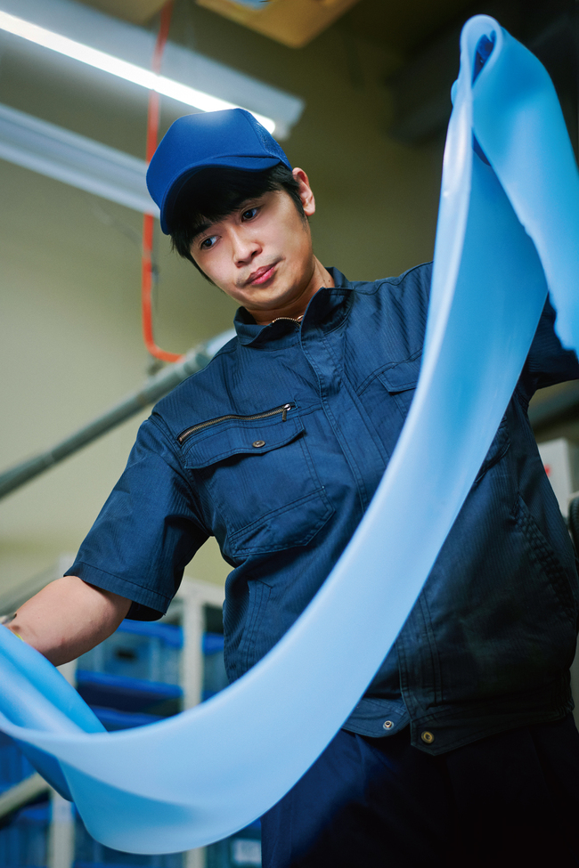 社員数32人。ゴム製品の製造とフィルム加工を専門とするが、そもそも精度を出しにくいゴム製品を高精度で仕上げる技術を持っている。