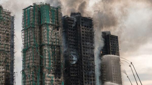当局は、建物の窓に取り付けられた劣悪な網やプラスチックシートが、延焼を助長した可能性があるとしている。火災は、高層住宅群「宏福苑(ワン・フク・コート)」の一部の棟で、1日以上にわたって猛威を振るった。