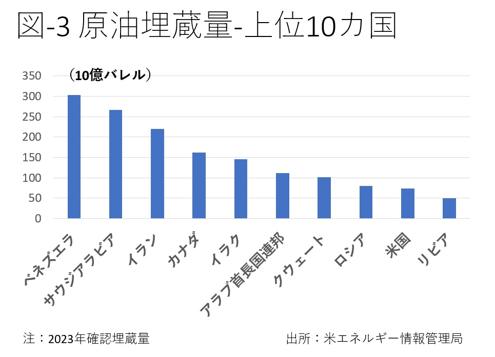 石油の国別埋蔵量は図-3の通りだ。石油の消費量はオイルショック前との比較では伸び率が緩やかになったが、途上国の経済発展もあり、毎年少しずつ増えている(図-4)。