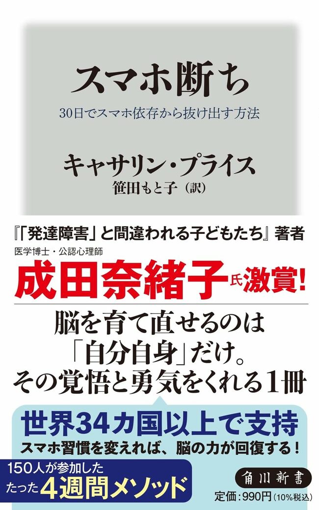 2冊目は『スマホ断ち』(キャサリン・プライス著、笹田もと子訳、KADOKAWA)である。日常生活で感じている人も多いと思うが、スマホは私たちから時間を奪う最大の敵である。しかし、スマホをなかなか手放せないのも事実である。