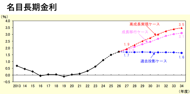 なお、成長移行ケース、高成長実現ケースにおいても、長期的には、名目経済成長率と名目金利は33年には逆転し、ドーマー条件が満たされなくなるので、条件は同じだ。
