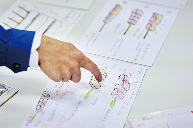 「先代は、発想するスピードが速い人でした。缶ビールの缶がコロンと転がるのを見て、あっ、これは竹串を自動で送る装置に応用できるかもしれないぞって、カレンダーの裏なんかにすぐ書きつけるんです」
