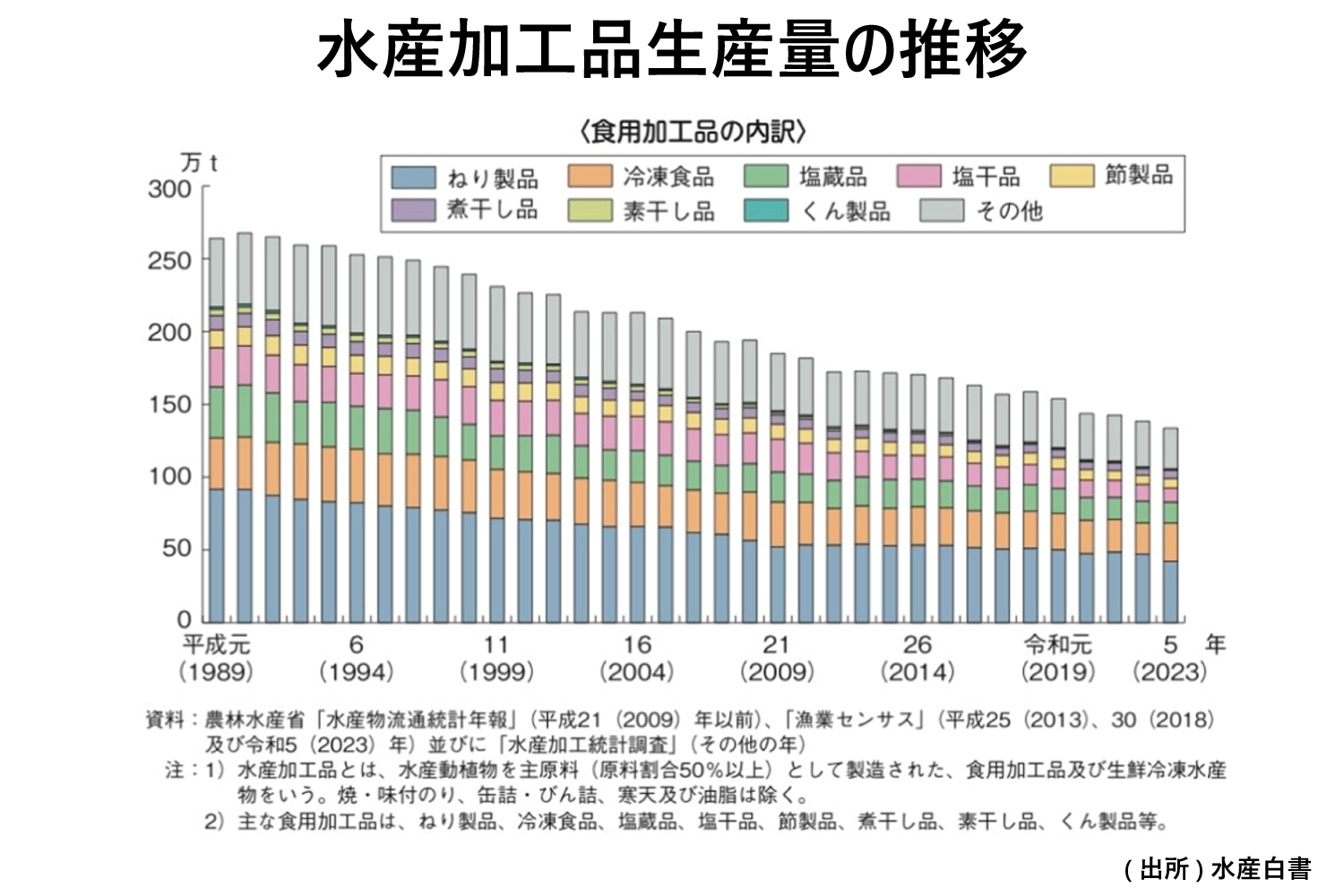 世界第2位の水産物輸出国であるノルウェーをはじめとする海外からの輸入原料は、世界の水産物需要と中国・アジアなどでの海外加工により今後も減少していきます。