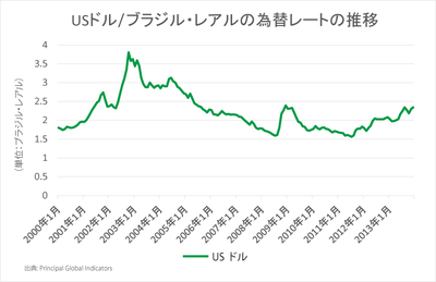 目先ではレアルは下落傾向にある(断りがないかぎり、対米ドルでの説明とする)。2012年時とくらべておよそ2〜3割の下落となっているが、これは、ブラジルの経済力の直接の反映といえるかどうかでいえば、イエスとは必ずしも言い切れない。