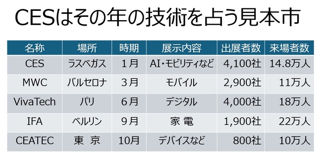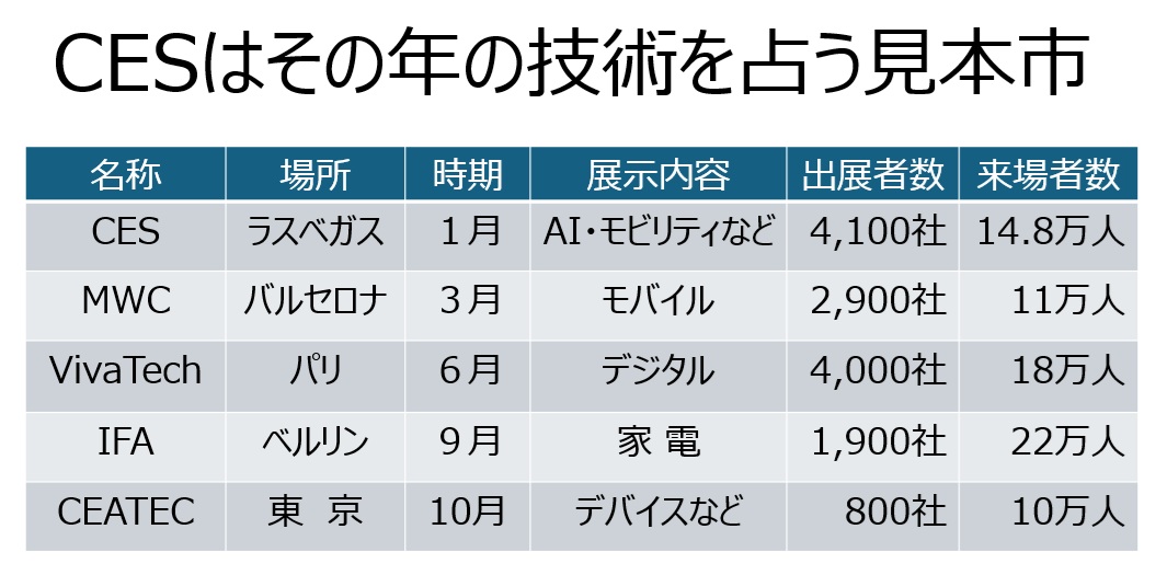 「電気やインターネットの登場が我々の生活を大きく変えたが、次の時代を再定義するのはAIだ。生成AIの登場が人々の生活や産業を激変する」。CESの開幕基調講演で、主催者である全米民生技術協会(CTA)のゲイリー・シャピロ最高経営責任者(CEO)が指摘した。