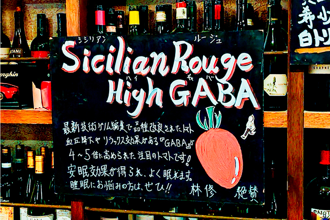 国会議事堂のある東京永田町に隣接する平河町に、ゲノム編集トマトを提供するイタリア料理レストラン「エノテカドォーロ平河町店」がある。店に入ると壁に大きな看板があり、「シシリアンルージュ ハイギャバ 最新技術ゲノム編集で品種改良されたトマト 血圧降下やリラックス効果がある『GABA』が4~5倍に高められた注目のトマトです・・」とある。