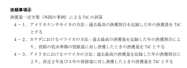 ところがこの後水産庁は、資源評価を委託している水産研究・教育機構(以下「水研機構」)に対して、今回枠を大幅増加させる根拠として持ち出してきた謎の計算式が「アメリカにおけるマツイカの方式」であるとして、これに基づいてTACの計算をするよう求めている。委託を受ける立場にある水研機構はこれに従わざるを得ない。