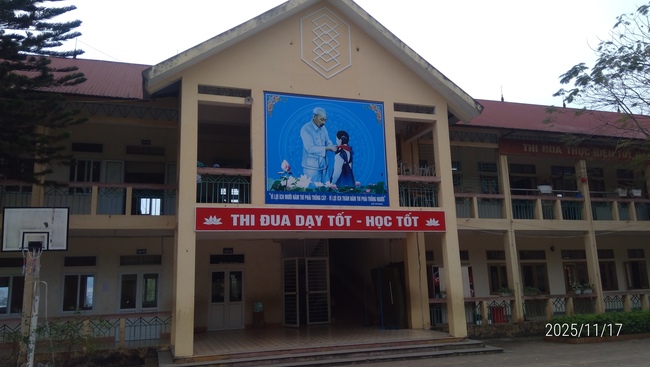 鉄筋コンクリート4階建ての校舎が2棟あり、中央の壁にはホーチミンが小学生の少女の首に“赤いスカーフ”を結んであげている姿が描かれている。ホーチミンが少年少女の首に赤いスカーフを結んでいる大きな壁画はベトナムのほとんどの小中学校にある。