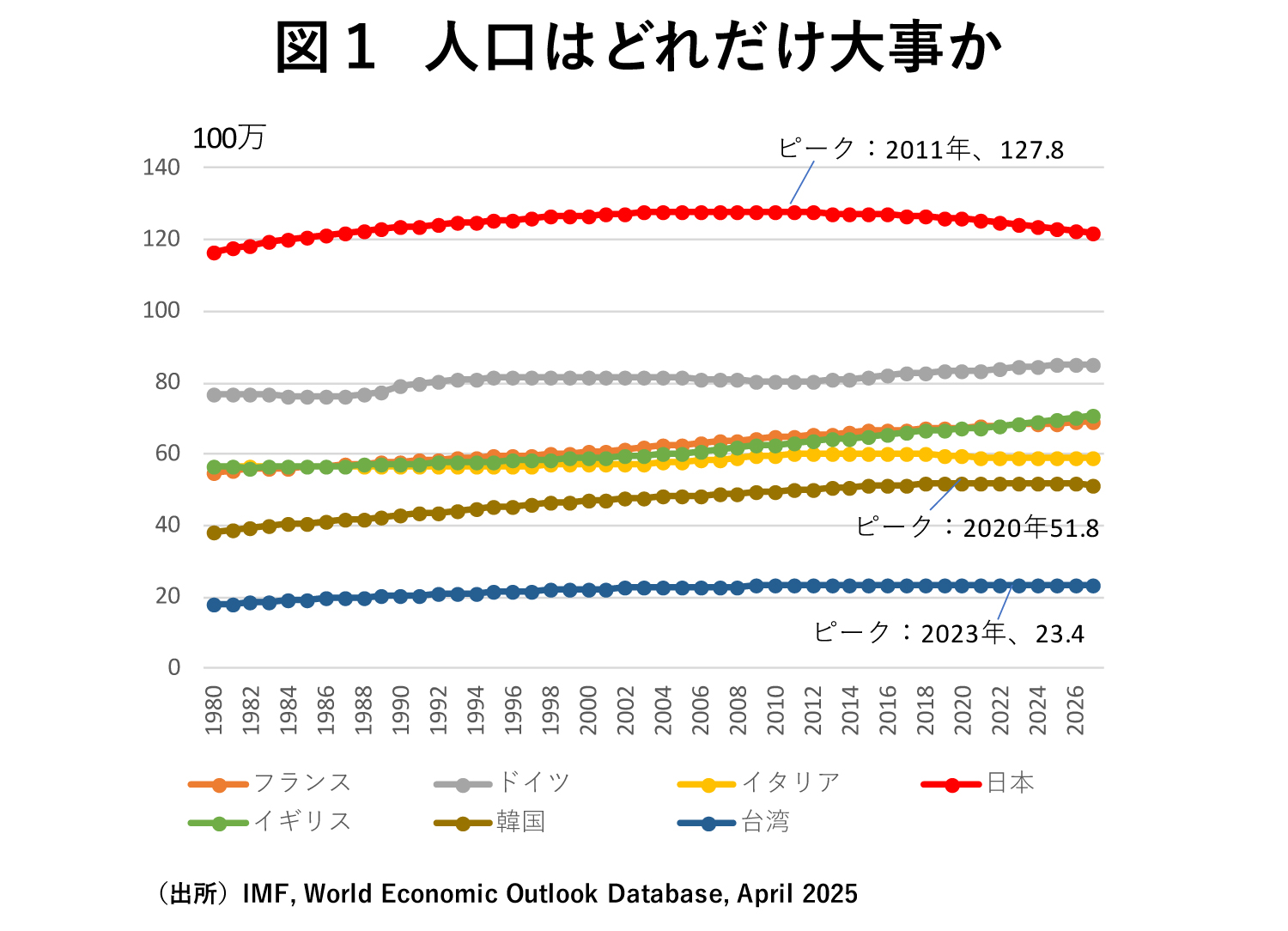 イタリアも韓国も台湾も人口は減少している。ドイツは2012年まで人口が減少していたが、その後増えている。増えているのは移民によるものだ。フランス、イギリスの人口増加もそうだ。