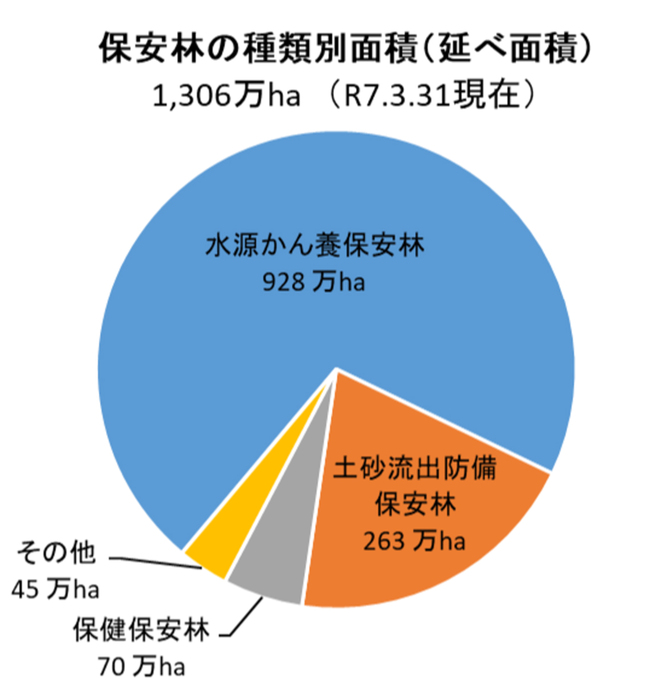 以上の2種類で保安林全体の9割を超す。