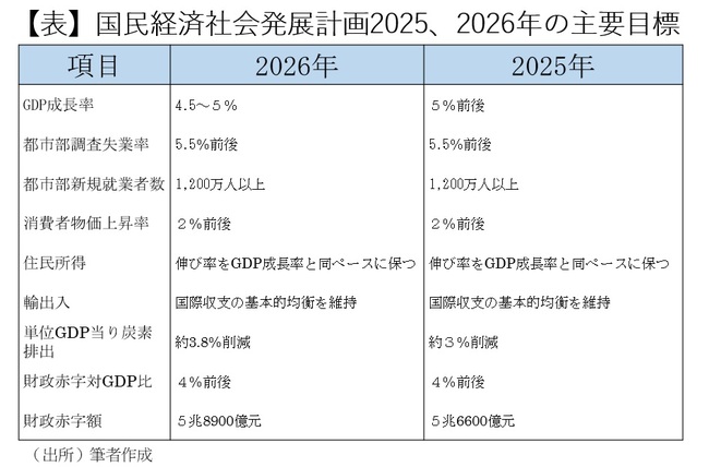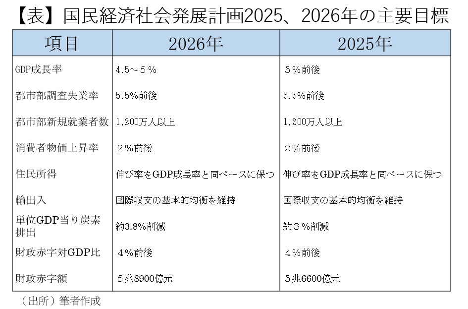 第4に対外経済政策については、「ハイレベルの対外開放をさらに拡大する」との方針が再確認されたが、25年に1.2兆ドル(対前年比0.2兆ドル増加)に達し、欧州諸国を中心にこれを問題視する発言が出ていることから注目された貿易黒字解消への具体策は示されなかった。26年の目標は「国際収支の基本的均衡を維持する」にとどまっている。