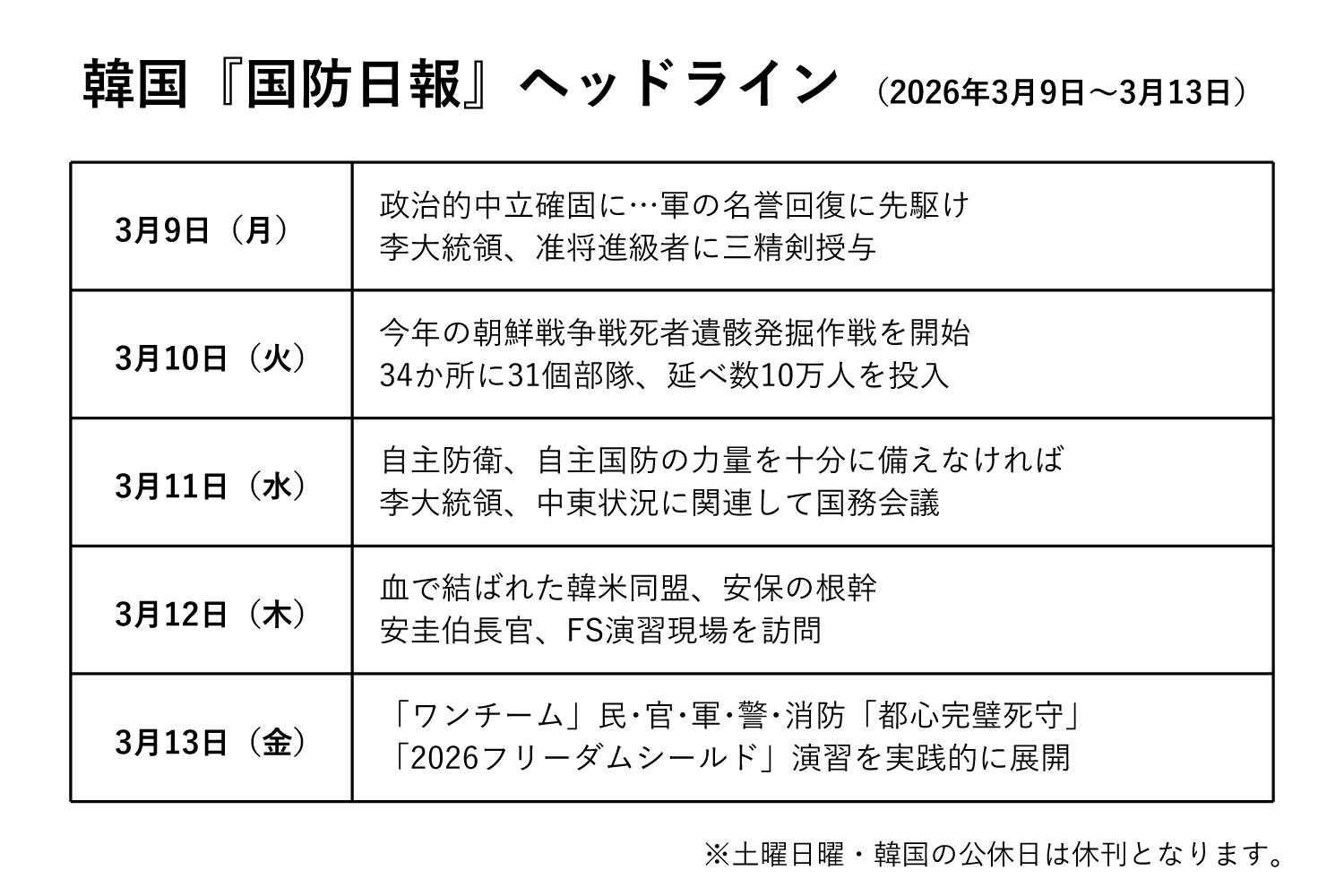 国防日報は3月9日から始まった米韓連合演習「自由の盾(Freedom Shield)」の特集を連日行っている。そこから見えるのは、ウクライナ、ガザなど戦場から得られた戦訓が色濃く反映されているということ。韓国は「今夜でも戦える」をスローガンに士気を高めているが、武器輸出では9位に後退するなど快進撃に翳りが見えてきた。