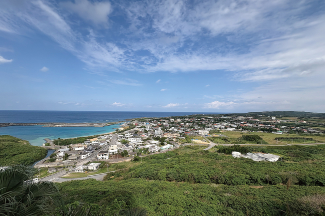 与那国島の中央には「ティンダバナ」と呼ばれる岩山がそびえる。取材を終え、島を離れる直前、そこから島を見渡した。絶景であった。