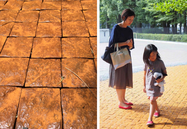 こうして生み出された《感覚細胞―2016・イチョウ》では、イチョウの根本に「CORQ®︎ (コルク)」という鉄製のブロックが敷き詰められた。もともとイチョウの周囲はタイルで舗装されているが、なぜさらに鉄畳を敷いたのだろうか。