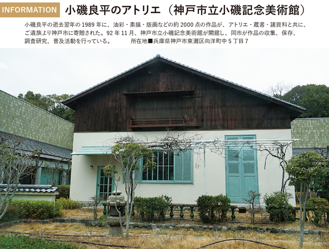 戦後、神戸各所で借り住まいを続けた小磯は、46歳となった49(昭和24)年、新たに自宅とアトリエを設けた。場所は住吉山手(現・神戸市東灘区)で、屋敷の広さは戦前とは比ぶべくもなかったが、アトリエは十分な広さに造られた。その主要な部分がいま、記念美術館の中心に移築保存されている。